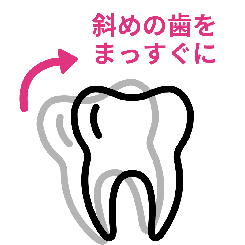 こうした症状の場合、当院では、まず最初に奥歯の傾きをまっすぐに矯正します。