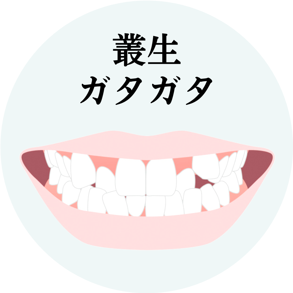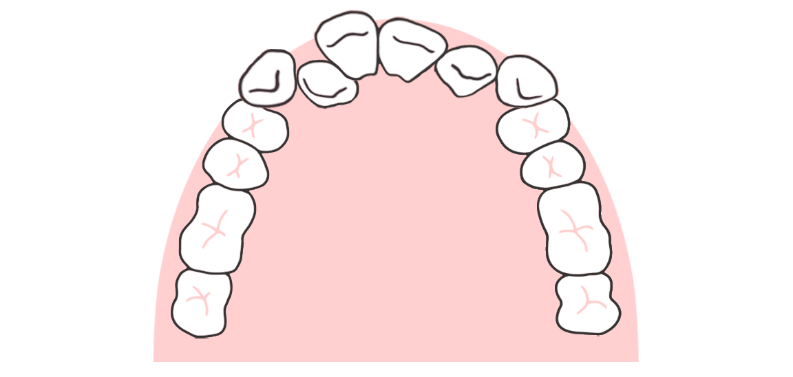 狭いスペースに歯を詰め込むため、歯が重なり合って叢生(ガタガタ)になってしまうのです。