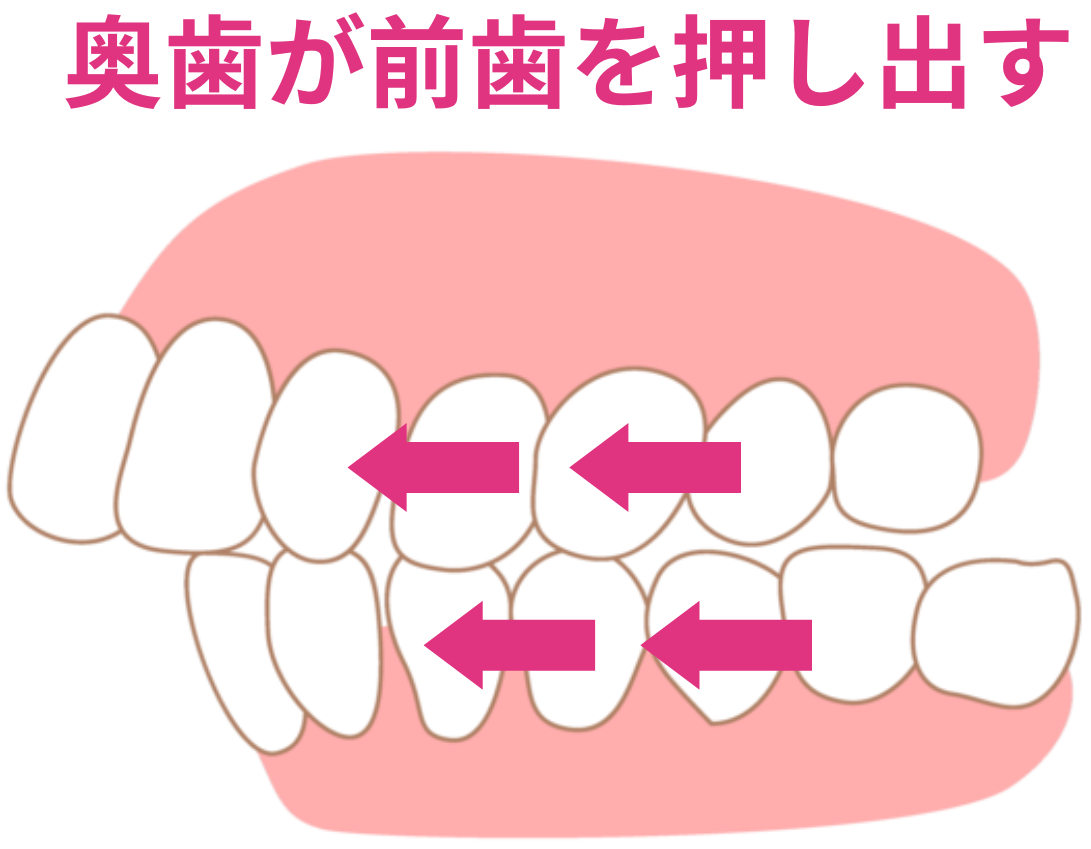 そのため治療後も前歯が奥歯から押され続けます。