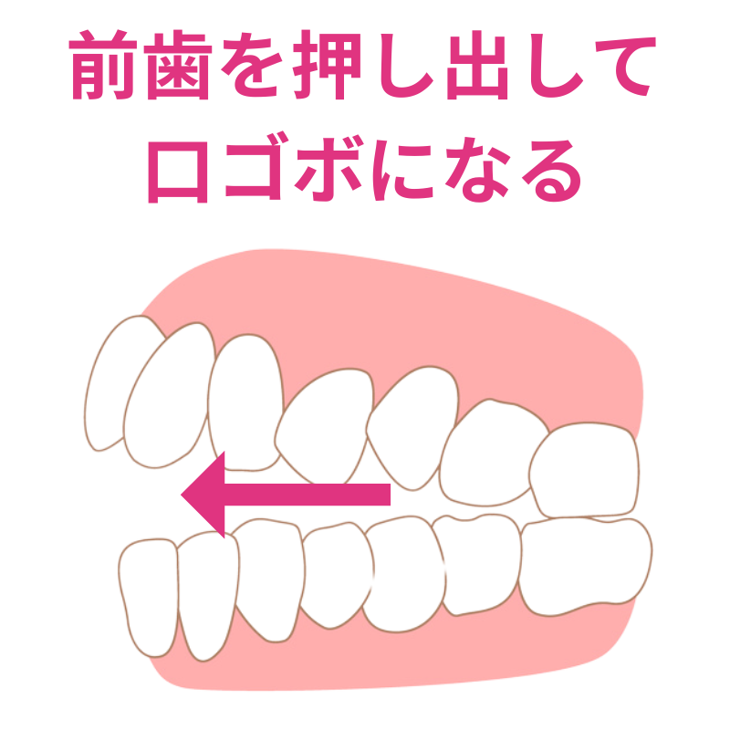この状態を放置すると、次々と隣の歯を斜めに押し出していき、前歯がガタガタの歯並びになってしまうのです。