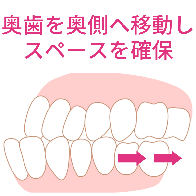 親知らずを抜いたスペースに奥歯を順に動かしていくことで、前歯をきれいに並べるスペースを確保します。