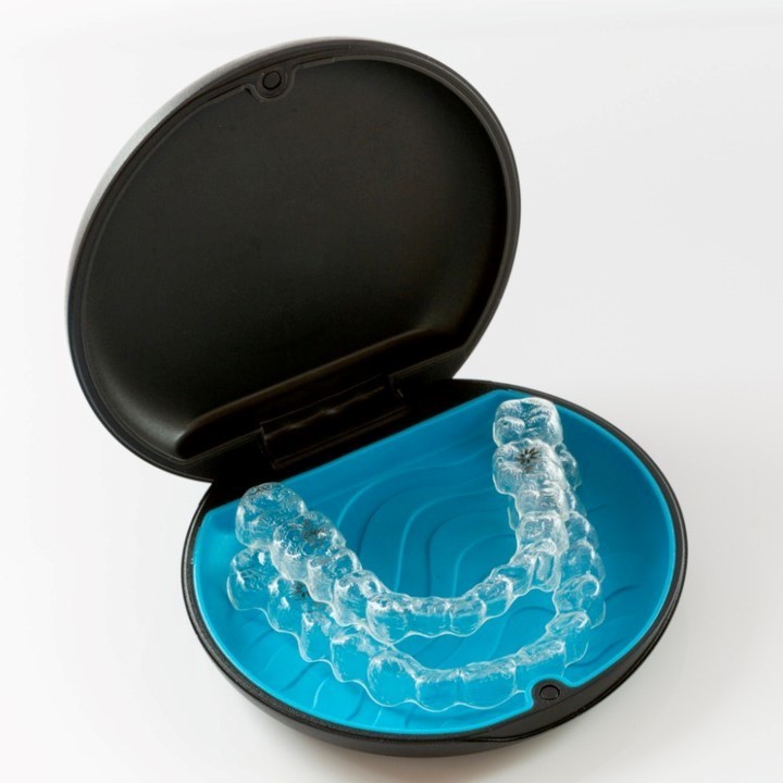 治療の説明:透明なマウスピース型の装置で行う矯正治療です。